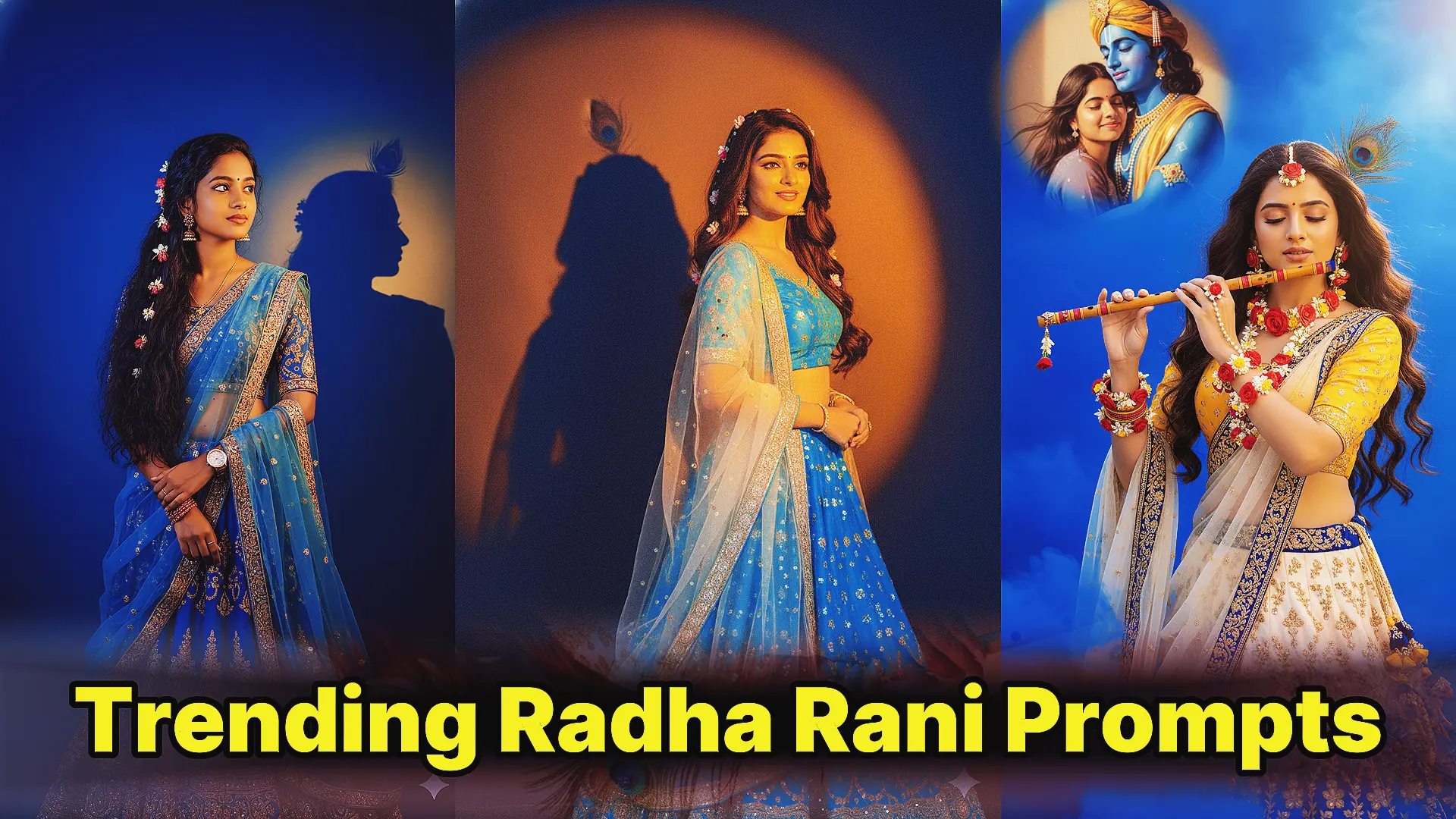 A good Radha Rani prompt includes clear instructions about the outfit, jewelry, expression, lighting, and background. The first and second prompts in this guide work especially well for devotional or cinematic edits.